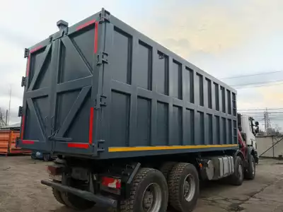 Мы изготавливаем усиленный самосвальный кузов прямоугольного типа с задними распашными воротами, имеющий каркасную конструкцию из вертикальных и горизонтальных ребер жесткости. По желанию заказчика толщина стенок может быть увеличена. При покраске используется покрытие, содержащее специальный пигмент, обеспечивающий долговечность, антикоррозионную и ударную стойкость.